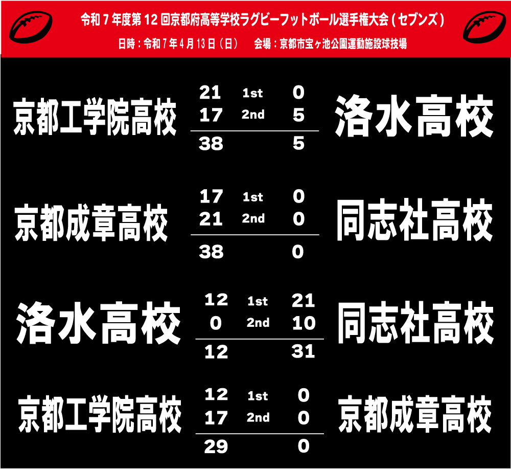 令和7年度 第12回京都府高等学校ラグビーフットボール大会(セブンズ)