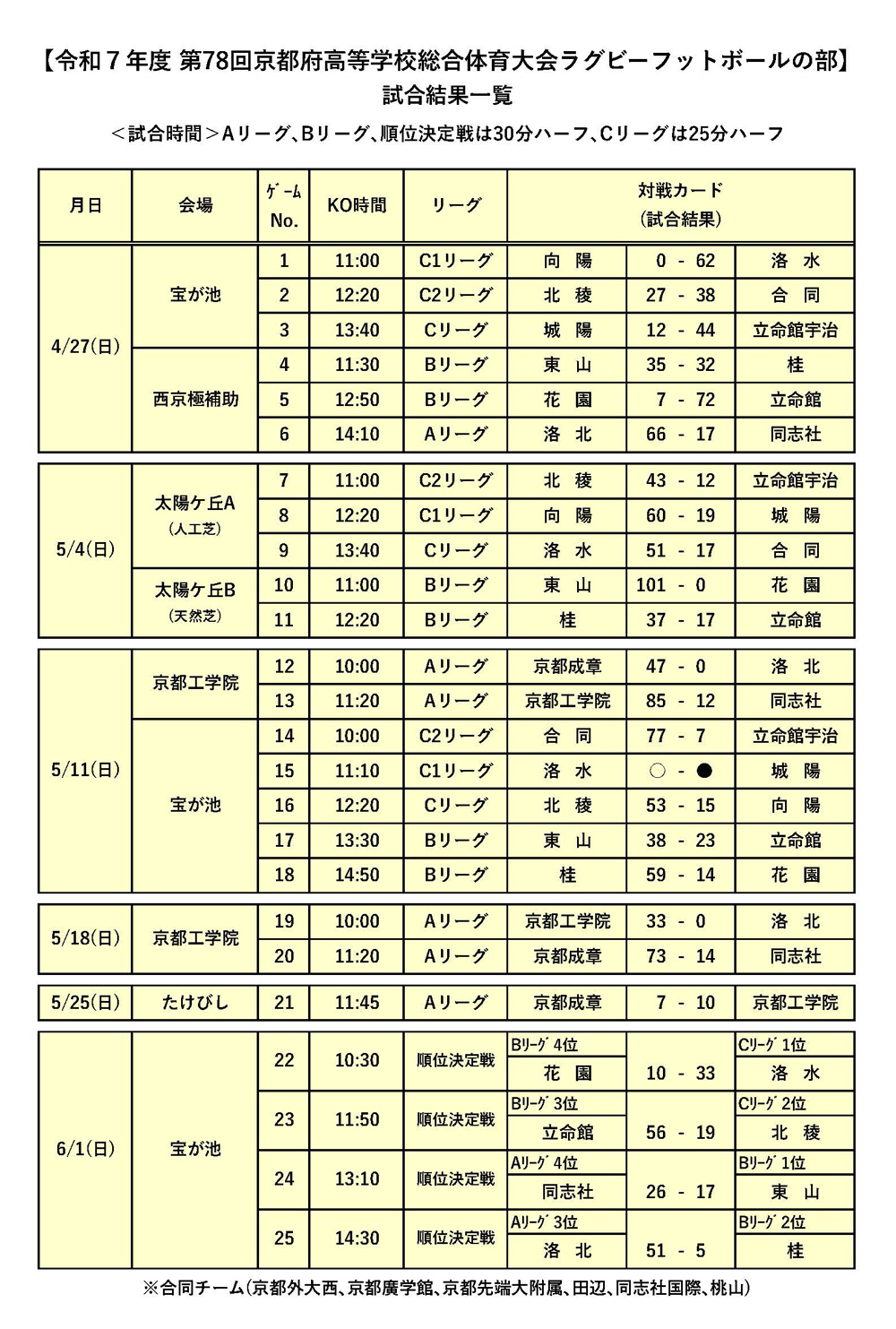 令和7年度第78回京都府高等学校総合体育大会ラグビーフットボールの部