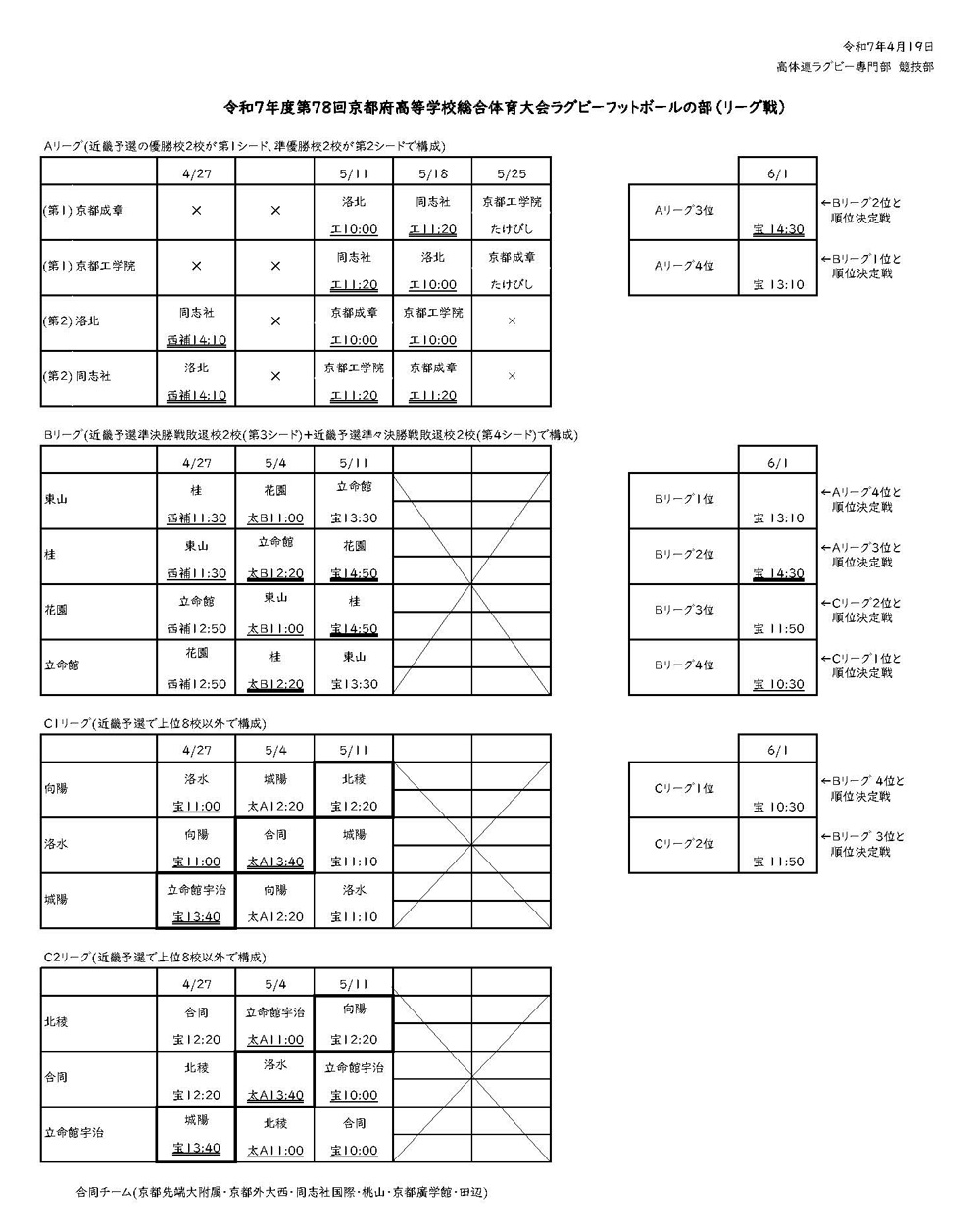 令和7年度 第105回 全国高等学校ラグビーフットボール大会京都府予選